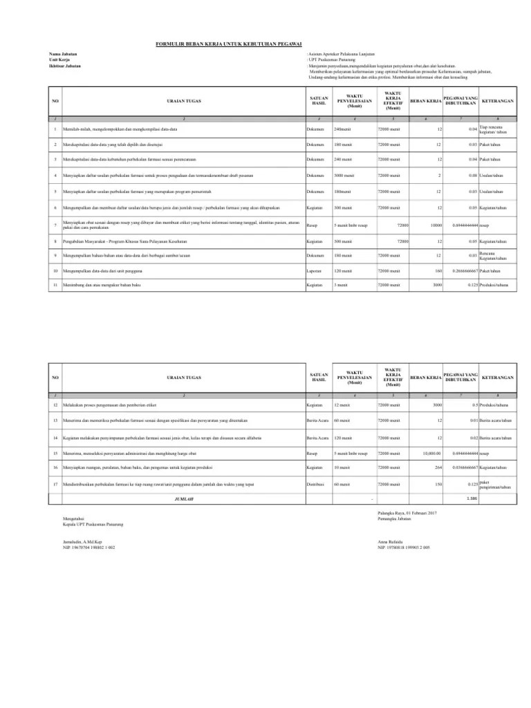 Dari analisis beban kerja jabatan yang tersebut pada kolom nama jabatan contoh .